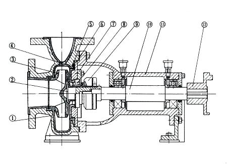 IHF氟塑料襯里離心泵結(jié)構(gòu)圖