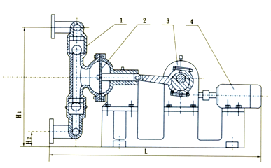 電動隔膜泵電機(4)通過減速箱(3)帶動左右兩端柱塞上面的隔膜(2)一前一后往復(fù)運動。