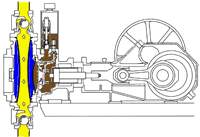 在左右兩個泵腔內(nèi),裝有上下四個單向球閥(1)隔膜的運動,造成工作腔內(nèi)的容積的改變,迫使四個單向球閥交替地開啟和關(guān)閉,從而將液體不斷地吸入和排出。