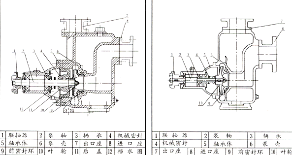 3.在寒冷季節(jié),應(yīng)將泵體內(nèi)的儲(chǔ)液和軸承體冷卻室內(nèi)的水放空,以防凍裂機(jī)件。
