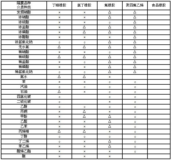 3.氟橡膠6021#本單位特制,主要用于高溫150℃:,耐甲笨耐腐蝕。但價格比其它隔膜高。