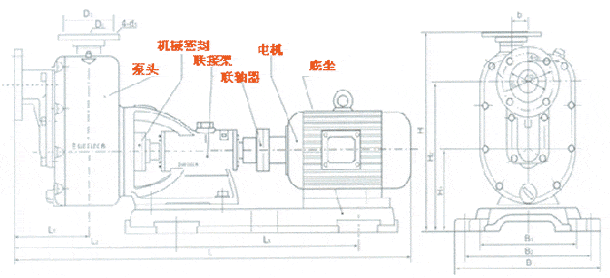 ZS型玻璃鋼自吸泵外型尺寸圖