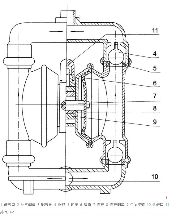 QBY型氣動(dòng)隔膜式泥漿泵的結(jié)構(gòu)圖