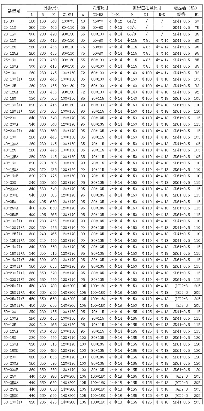 注:?jiǎn)渭?jí)單吸管道清水離心泵參數(shù)立式泵與臥式泵相同