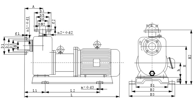 | 型號(hào) | A | B1 | B2 | B3 | h | H | H1 | H2 | L | L1 | L2 | m-φd3 |