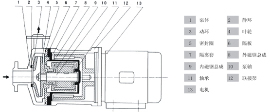 CQF型工程塑料磁力泵結(jié)構(gòu)圖